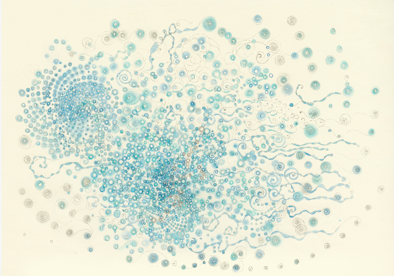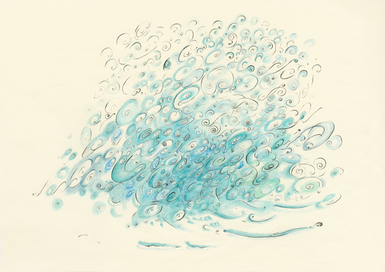 Coloured pencils, Indian ink on bible paper, 21×29,7 cm